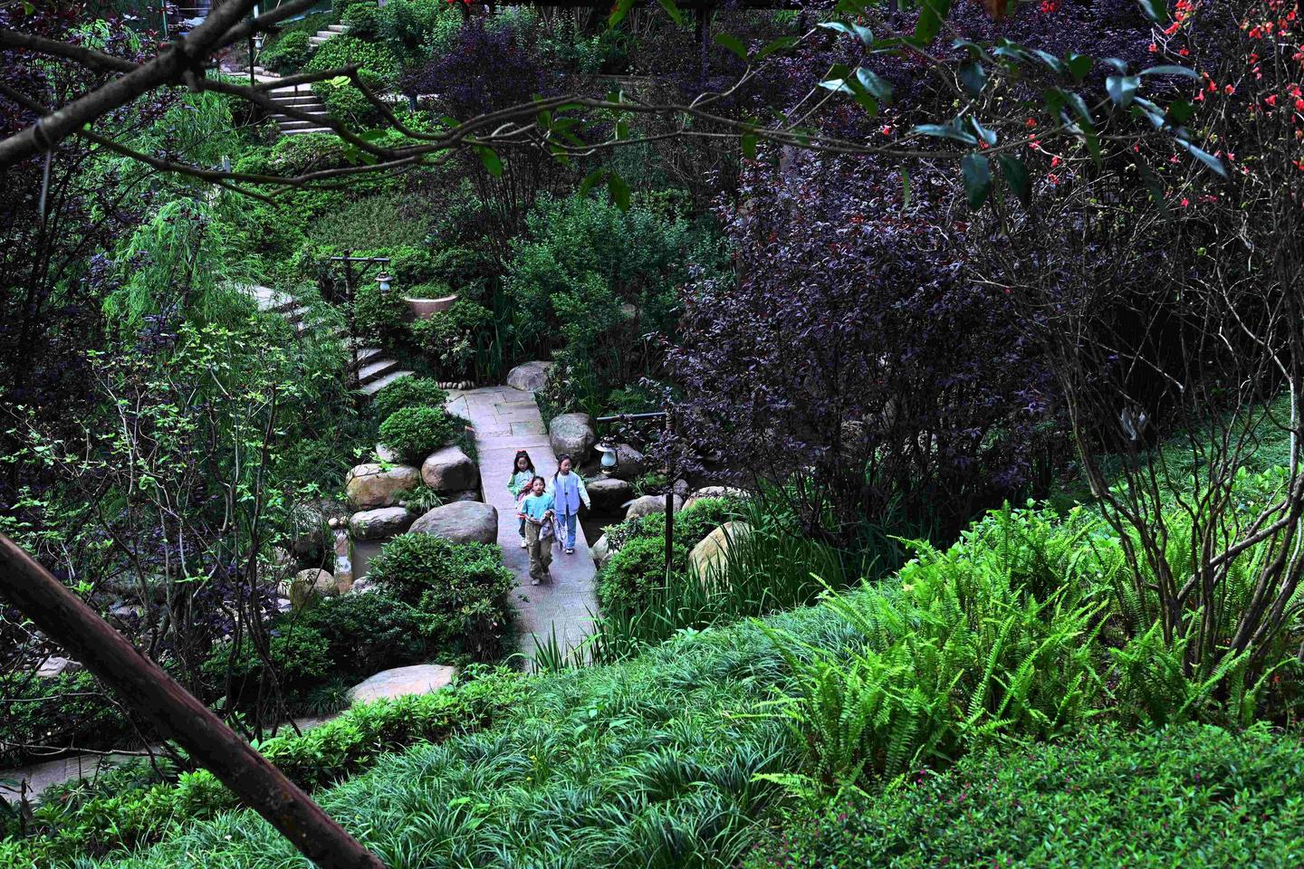 2024年5月5日,重庆忠县东坡花园美景。东坡花园位于重庆忠县城川祖庙大桥下,与忠州巷子相接,花园依据白居易古诗《东坡种花二首》描写的意境,利用现代元素再现唐代时期东坡花园的繁荣盛景建设,为忠州市民休憩观赏就近的好去处。
