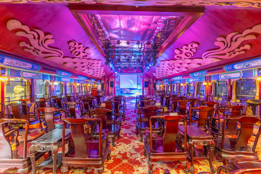 皇家盛世号是长江三峡运营的五星级主题游轮,以中国龙为核心设计元素,提供重庆-宜昌往返航线,搭载全景阳台房及帝王文化主题活动。