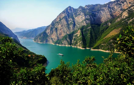 过了灯影峡,后行不多久,便可望见一排陡峭的石壁。它高耸于郁郁葱葱的群峰之上,俯瞰着波涛汹涌的激流。绝壁下九条蜿蜒下垂的山脊,宛如九龙下水,气势十分雄伟壮观。那横空的石壁就是黄牛岩,河谷便是“黄牛峡”。与灯影峡相比,黄牛峡两岸山势高耸,岩形粗犷多变。这里是有代表性的震旦纪地质断层。在黄牛峡中仍可找到鱼类化石、三叶虫化石及其它海洋生物化石,它记录了三峡数亿年来的沧海桑田的变化。 以前,黄牛峡这段的江面上水急礁多,船行至此,必须小心翼翼。若是逆水,则更是进展缓慢。往往舟行数日,还可望见黄牛岩。于是世代流传下《黄牛谣》“朝发黄牛,暮宿黄牛,三朝三暮,黄牛如故。”李白过此,也曾赋诗“三朝上黄牛,三暮行太迟。三朝复三暮,不觉鬓成丝。”当然,这是过去了。 在黄牛峡南岸的黄牛山下,矗立着一座红墙黄瓦,金碧辉煌的古建筑,这就是三峡中最大最古老的建筑—黄陵庙。黄陵庙原名“黄牛祠”,三国时,诸葛亮入蜀,路过黄牛峡,见庙宇残破,便出资重修一新,还为此书《黄牛庙记》。 西陵峡:名峡荟萃聚西陵 西陵山水天下佳 “秭归胜迹溯源长,峡到西陵气混茫。屈子衣冠犹有冢,明妃脂粉尚流香。兵书宝剑存形似,马肺牛肝说寇狂。三斗坪前今日过,他年水坝起高墙。唐僧师弟立山头,灯影联翩猪与猴。峡进天开朝日出,山平水阔大城浮。已归东土清凉界,应惩西天火焰游。五十年来天地改,浑如一梦下荆州。” 这是郭沫若在时隔五十年再游西陵峡后写下的《过西陵峡》这首诗,作于1961年。诗中描绘了西陵峡壮美的风光,囊括了峡中的著名景观。 兵书宝剑峡