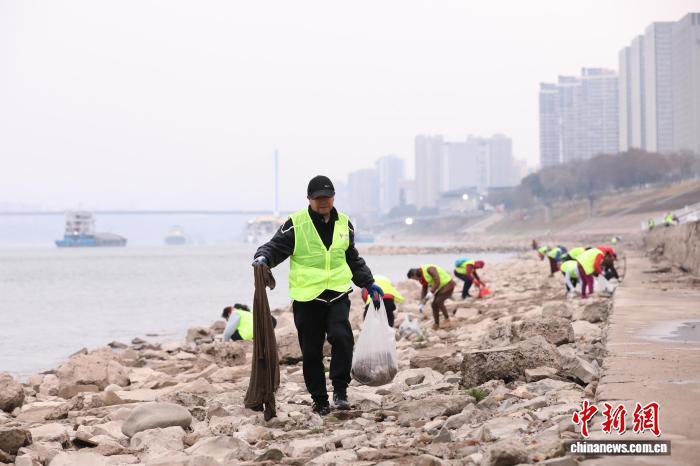 1月1日,湖北省宜昌市的200余名三峡蚁工来到运河长江入江口江滩捡拾...