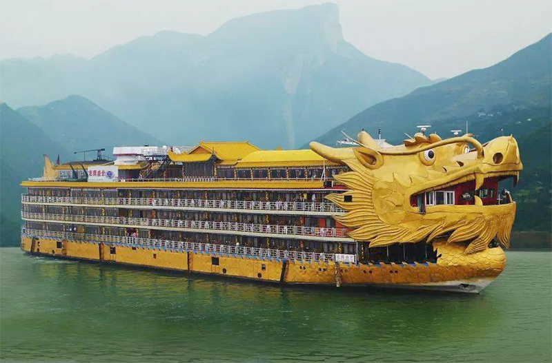 皇家盛世号游轮是钻石五星游船,如一条出水的蛟龙游弋于奔腾的长江之上,尽显中国古代皇家文化。内部风格更是古香古色,大堂正中摆放着一把龙椅,餐...