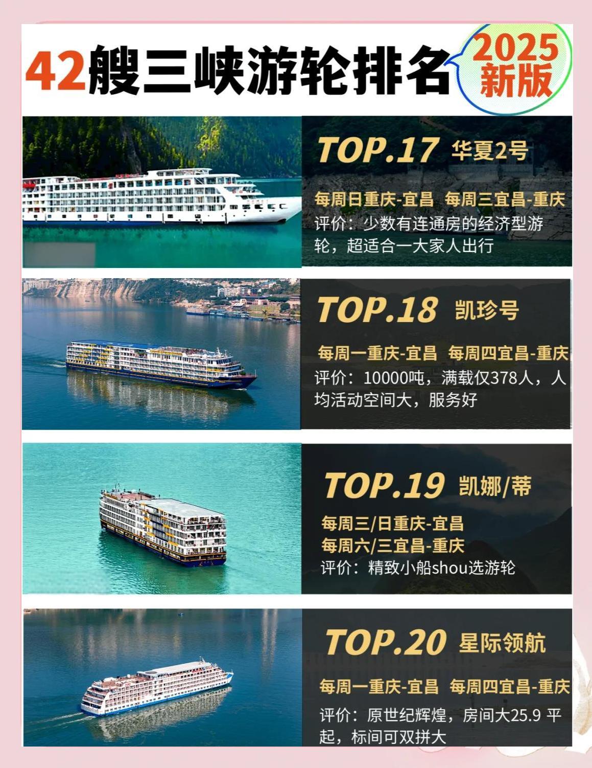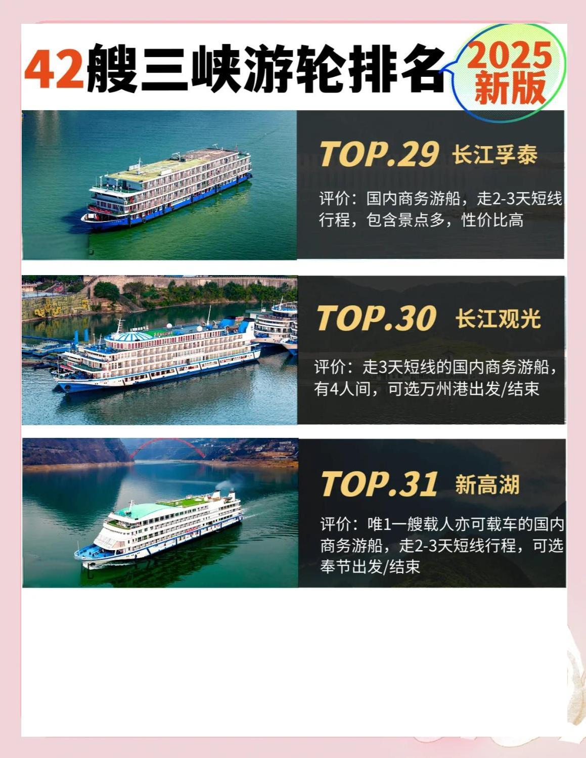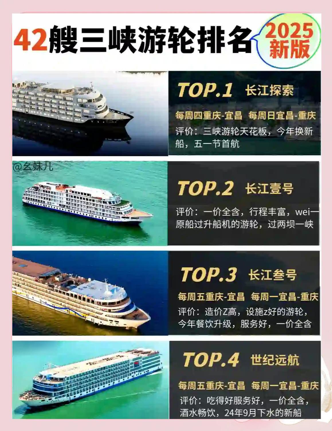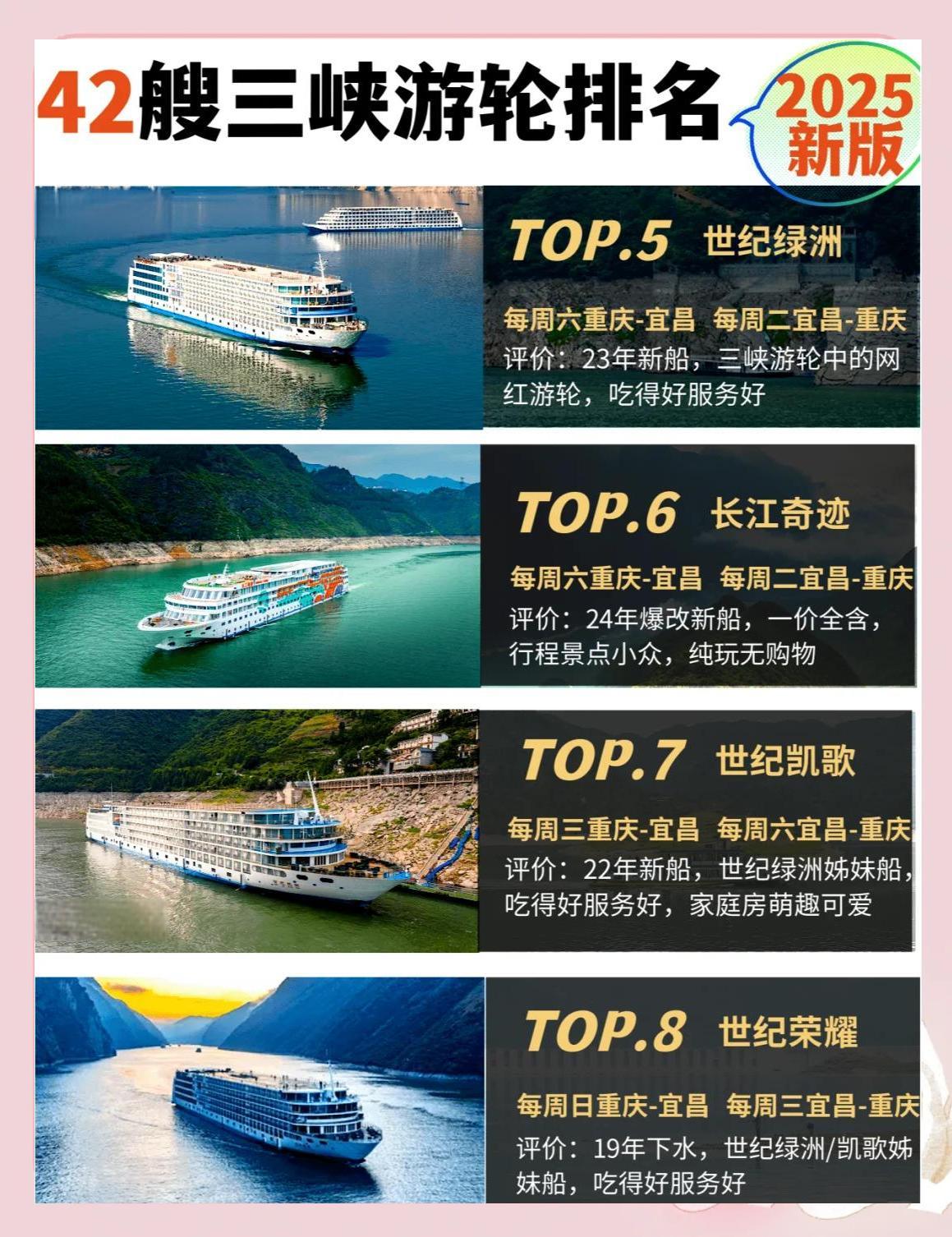 2025年,三峡游轮将迎来一波更新换代,四五艘老船将退役,同时将有两艘全新游轮加入。那么,哪艘船将成为新的“船王”呢?以下是2025年三峡游轮的最新排名: