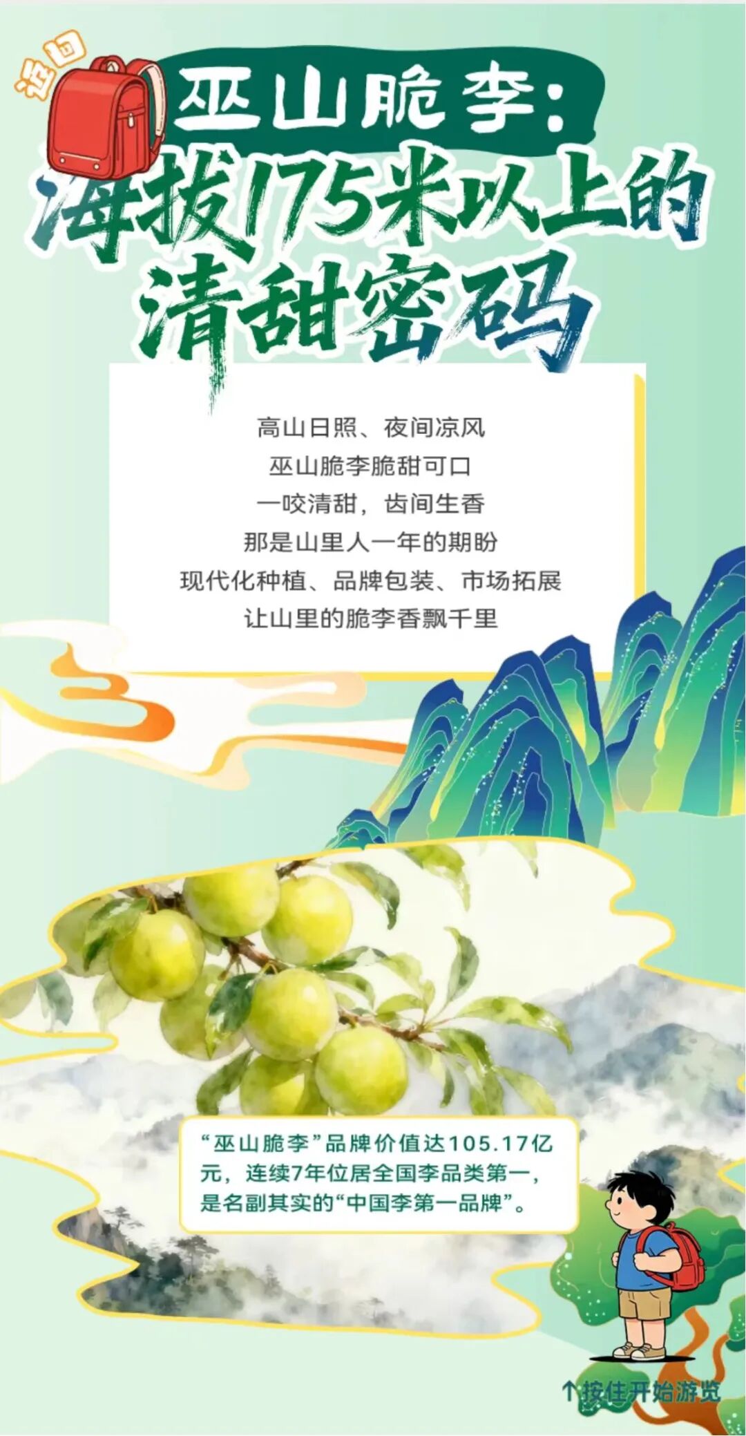 依托现代化种植、品牌化运营和市场运营,一颗脆李从山间果园走向更广阔的市场。产业链的延伸,让特色果品不再局限于季节销售,而是持续转化为稳定收益,成为库区山区产业发展的重要支撑。如今,巫山脆李已经成了库区名副其实的“摇钱树”。